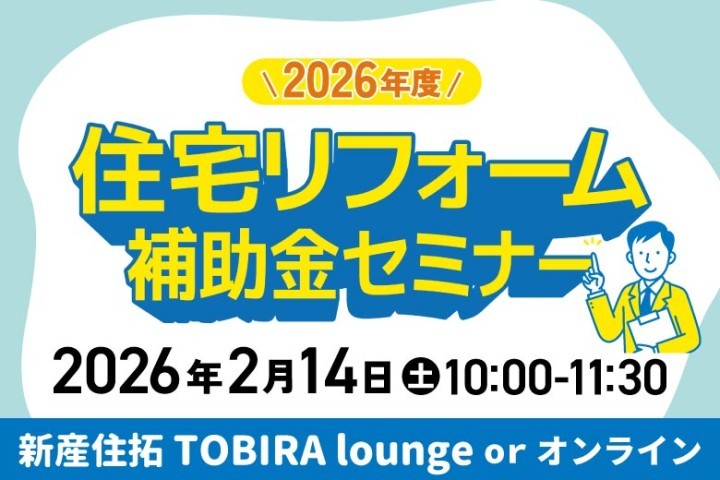 セミナー予約制第6回【2026年度】住宅リフォーム補助金セミナー受付中 2026.02.14(土) 時 間 10:00-11:30 場 所 新産住拓TOBIRA lounge(熊本市南区近見)もしくは オンライン 詳しく見る -