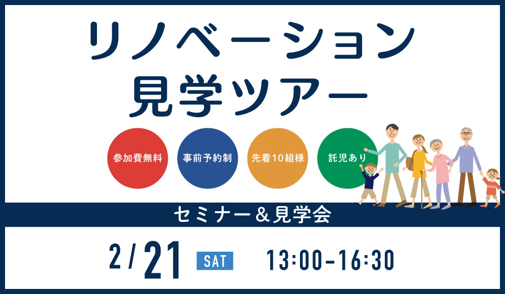リフォームのプロのセミナーと、リノベーションの現場見学で、初めてのリノベーションに対する不安や疑問も解決できるバスツアー。