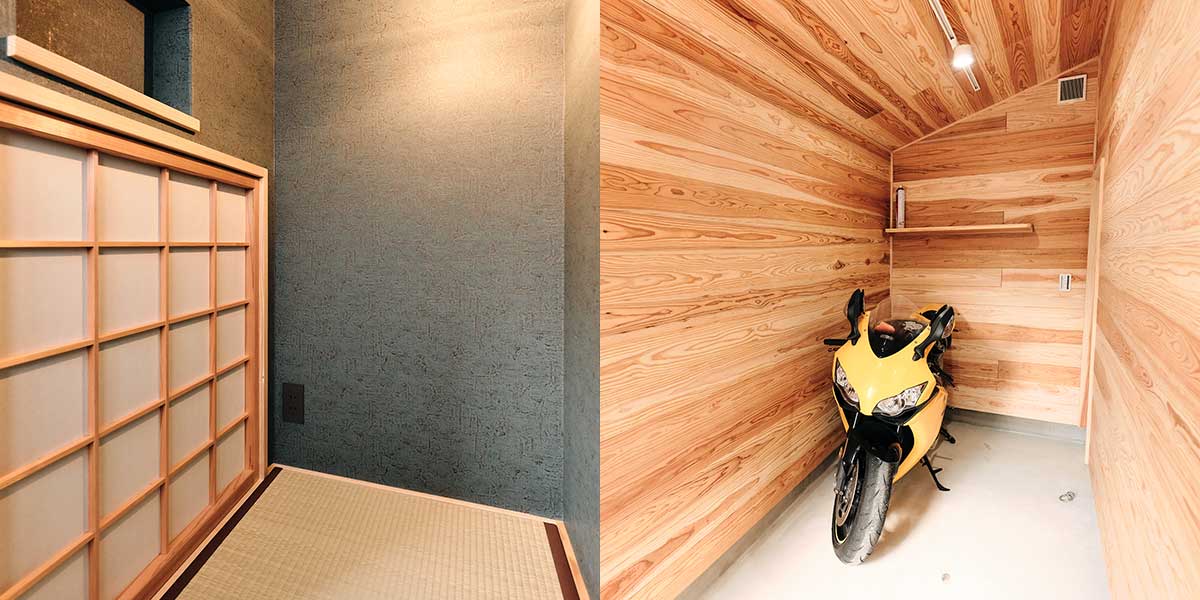 - 杉の無垢材が香る、雨風から愛車を守るバイクガレージ