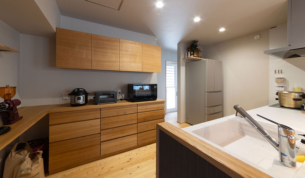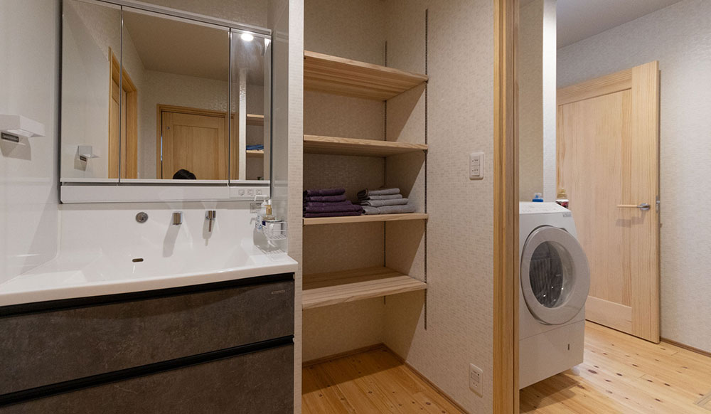 - 無垢材でつくる、収納力の高いオリジナル造作棚