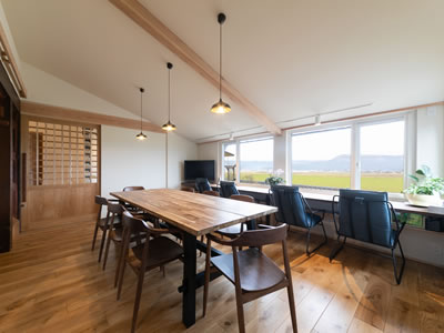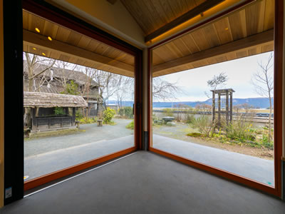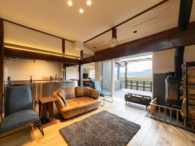大開口のある土間空間からは、阿蘇の雄大な景色を望むことができます。