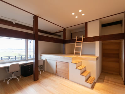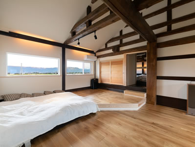 “これからも、雄大な阿蘇外輪山と田園風景を眺めながら暮らしたい” というご希望を叶えた「阿蘇の家」。LDK や子ども部屋、土間空間から阿蘇の景観を眺めることができます。