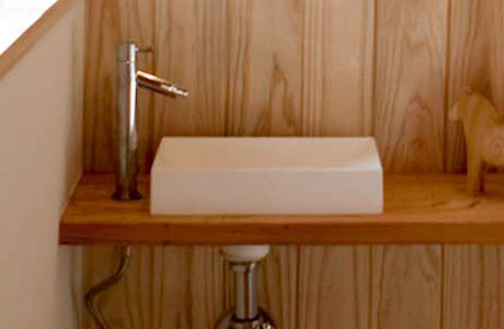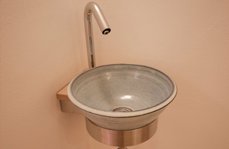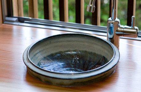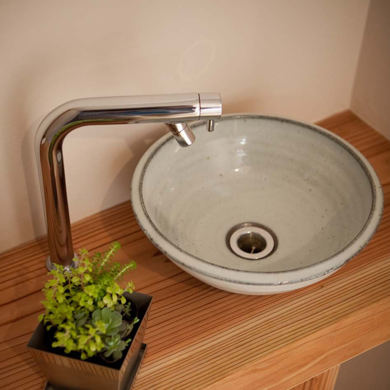 小岱焼きのボウルを使って、造作(オリジナル)の手洗いなども作ることができます。