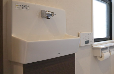 タンクレストイレなどタンクに手洗い機能がない場合、手洗い器があると快適です。