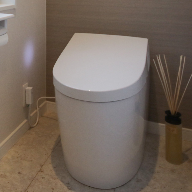 タンクがないため、デザインもすっきりしていて、トイレ空間が洗練された雰囲気になります。