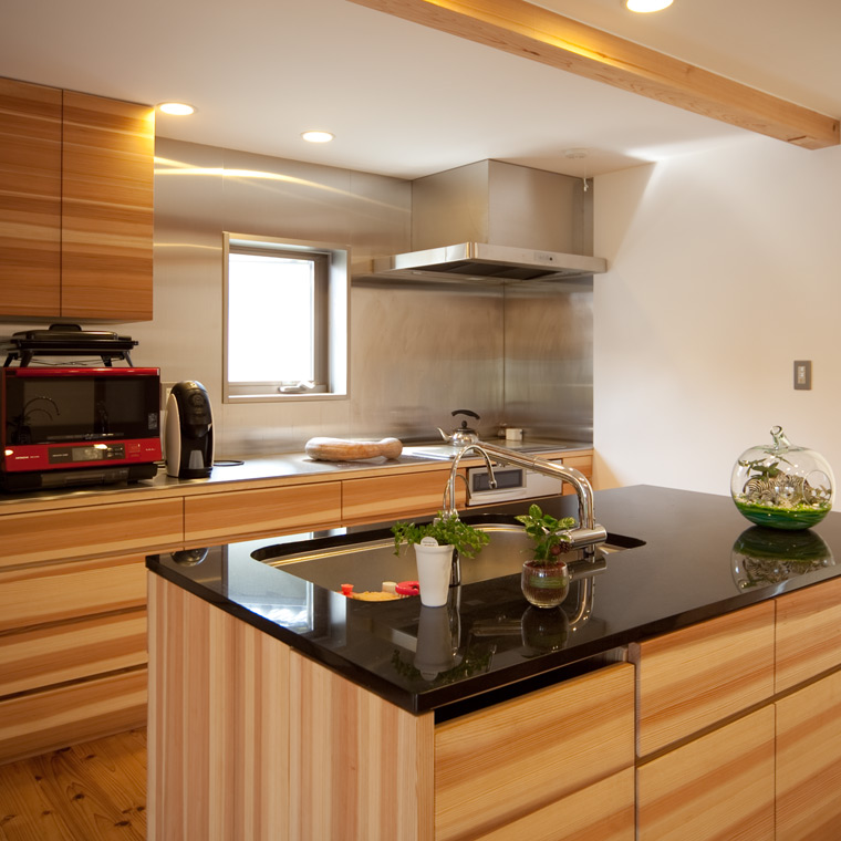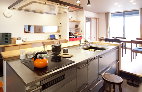 デザイン性が高いだけではなく、開放感もあり、四方から作業ができるので、ご家族やご友人と一緒に調理を楽しめるというメリットもあります。