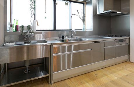 シンク、調理台、コンロが一列に並んだキッチンで、1番なじみの深いタイプのキッチンです。