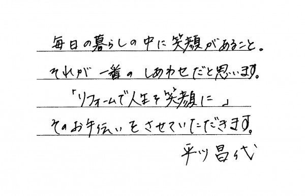 「リフォームで人生を笑顔に」私が大事にしている心がけです。