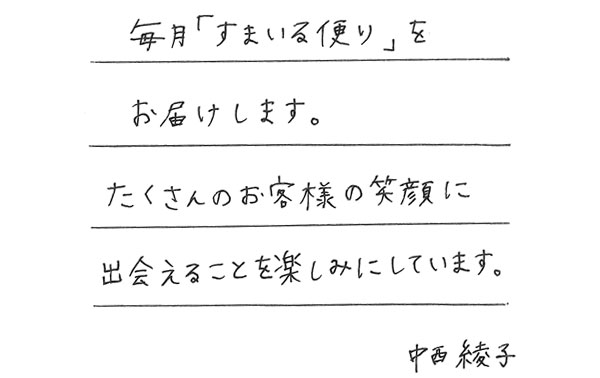 いつも「すまいる便り」を見てくだささり、いつも嬉しいお声がけしていただき、ありがとうございます。
