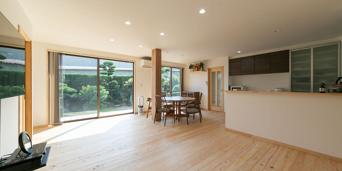 父が愛した庭を感じられる「リビングダイニング」は、いつも家族が集い寛げる空間になりました。