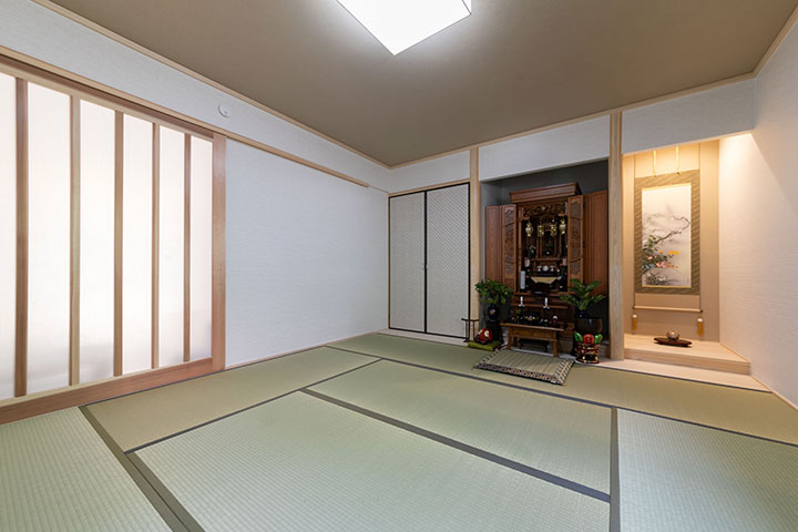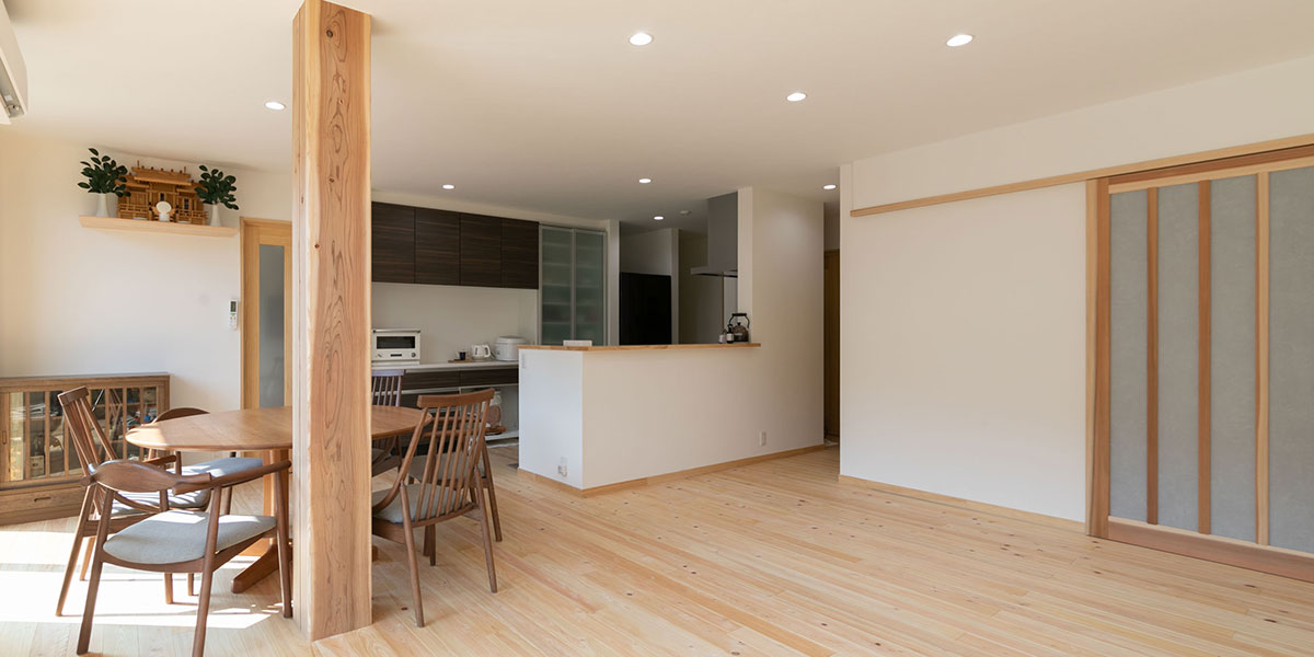 また、リビングと和室の建具をどちらも幅広くすることで、開け放った時に空間のつながりを感じられるようになりました。 -