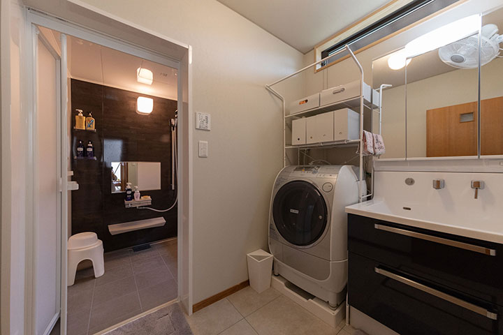 収納が無くて困っていた洗面脱衣室は、窓を小さくして壁面に収納スペースを作ってもらったので、我が家も“家事ラク動線”が叶いました。