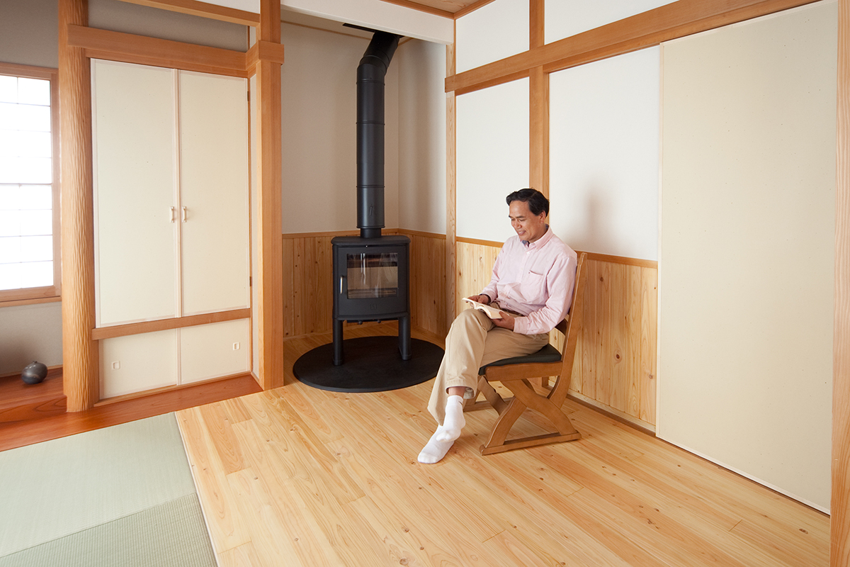 新産の10年点検を受けられたこともきっかけとなり、仏間の床をフローリング(一部畳敷き)に、押入れを薪ストーブのスペースにリフォームされました。